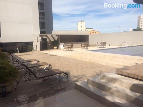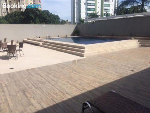Flat Apart-Hotel em Goiania坐落于戈亚尼亚,配备免费WiFi,配有游泳池、健身中心和餐厅,享有市景。内部提供私人停车位。